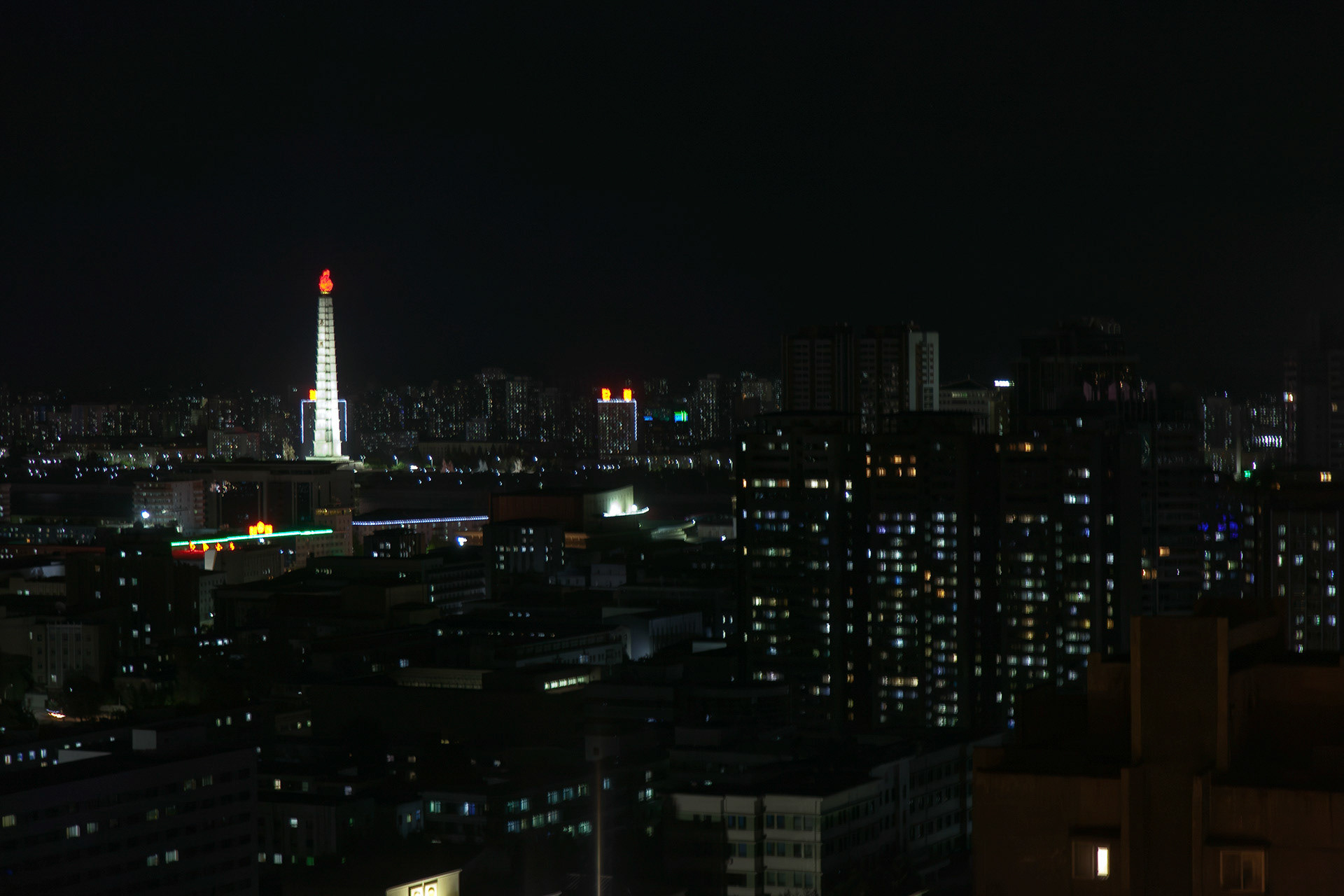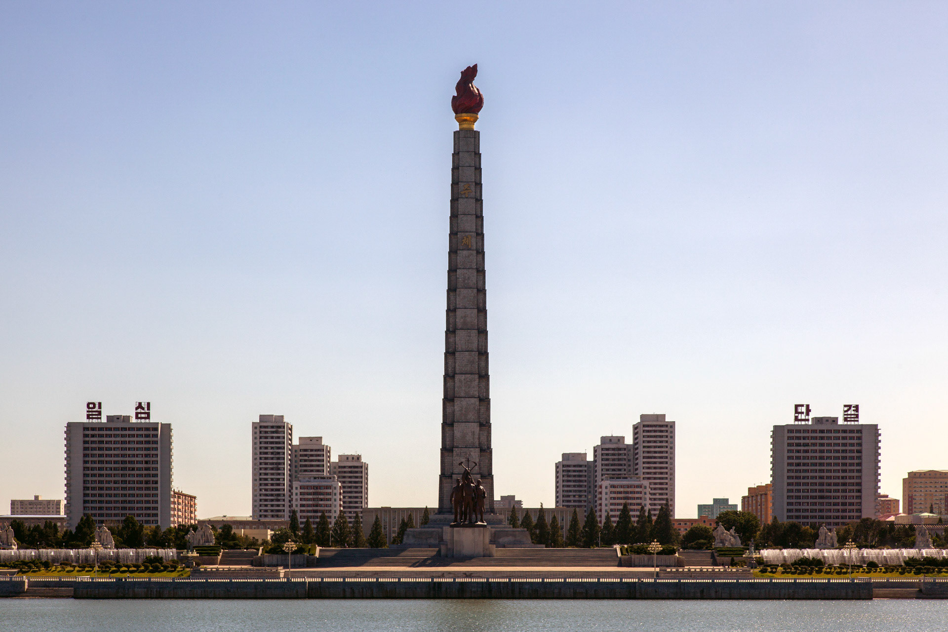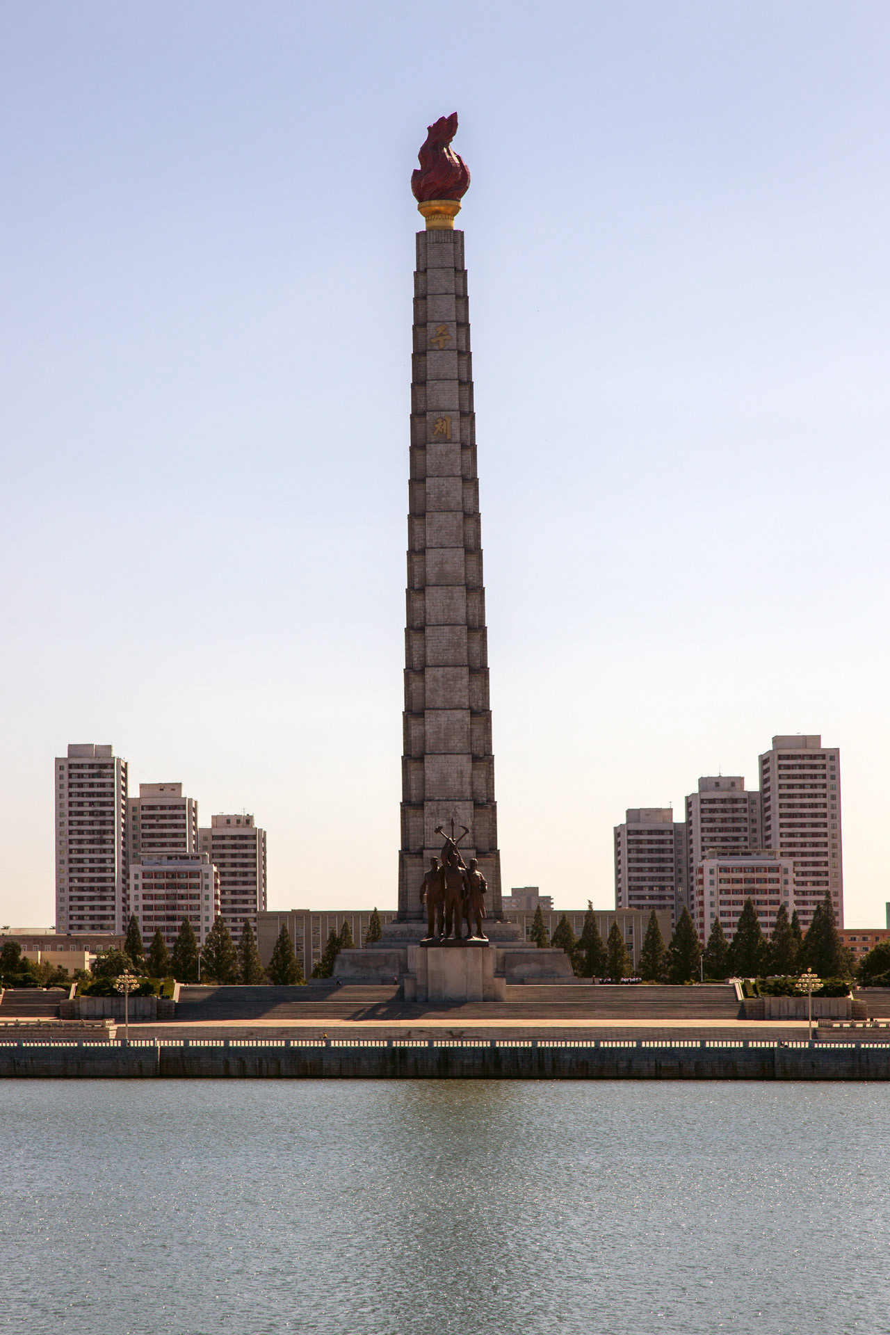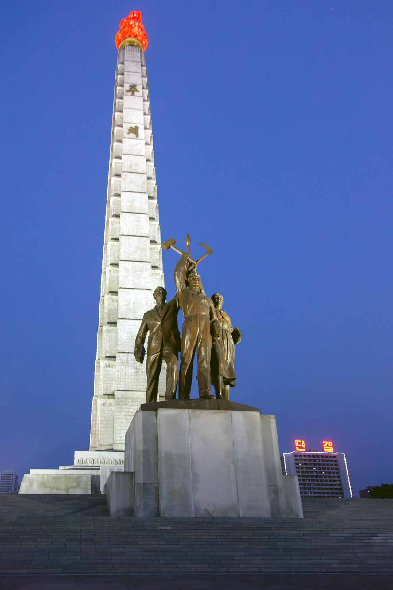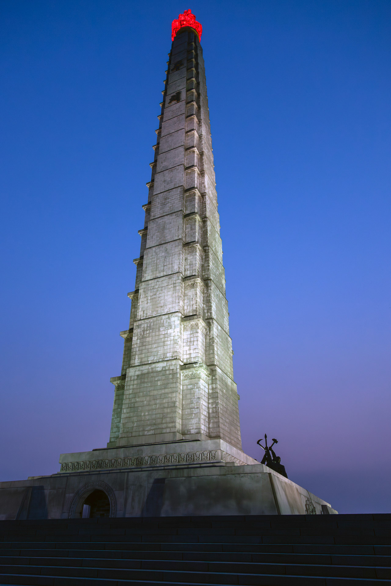 Crowning the structure is a 20-metre, 45-ton metal torch that burns with permanent illumination—a literal beacon meant to signify the guiding light of the Juche idea. In its fusion of mass, symmetry and ideological coding, the tower performs less as a mere landmark and more as a carefully orchestrated semiotic device within the state’s visual regime.