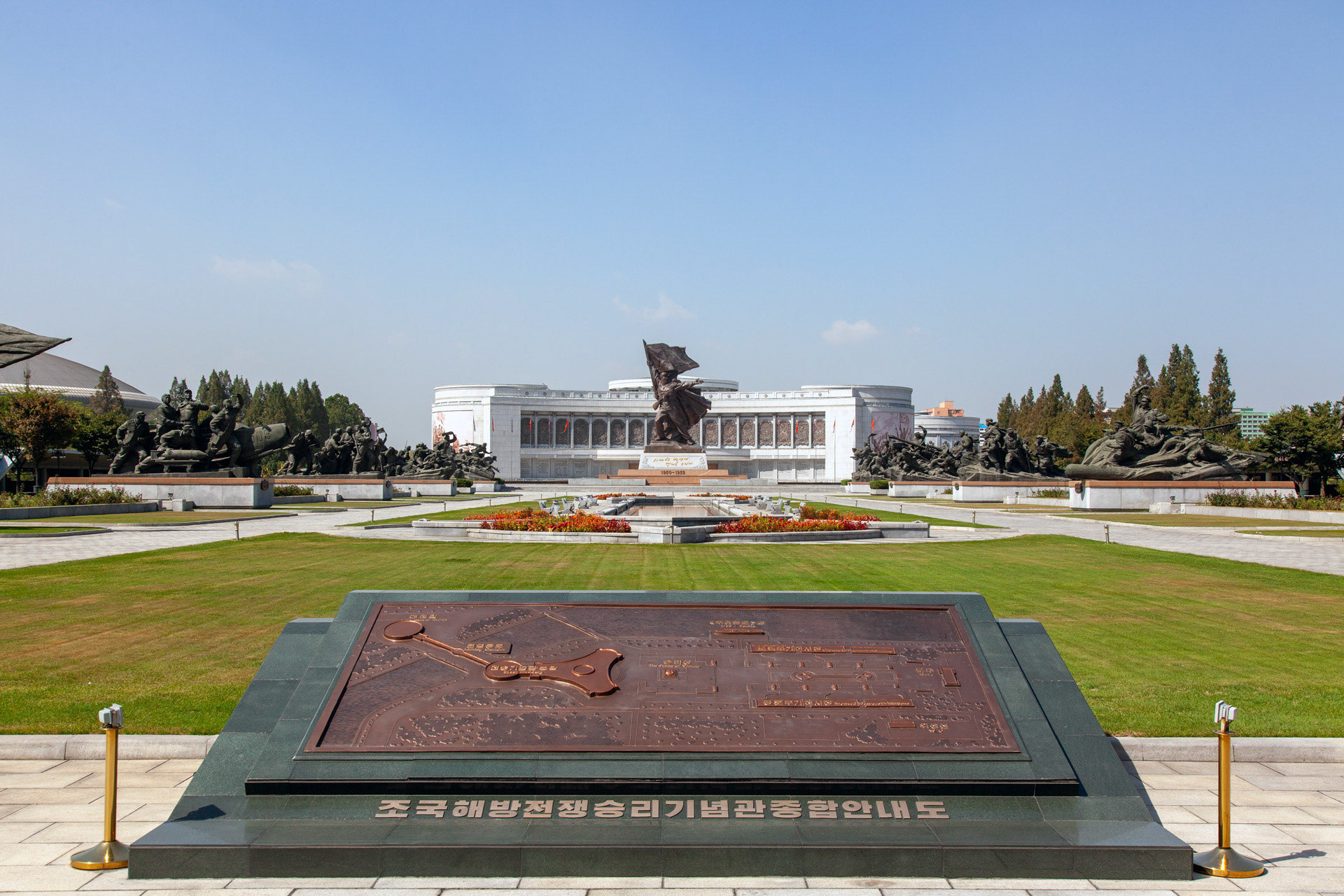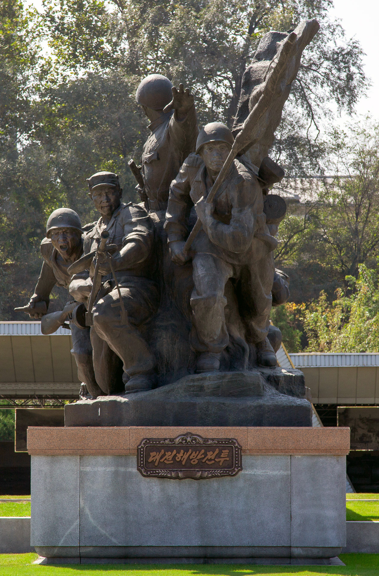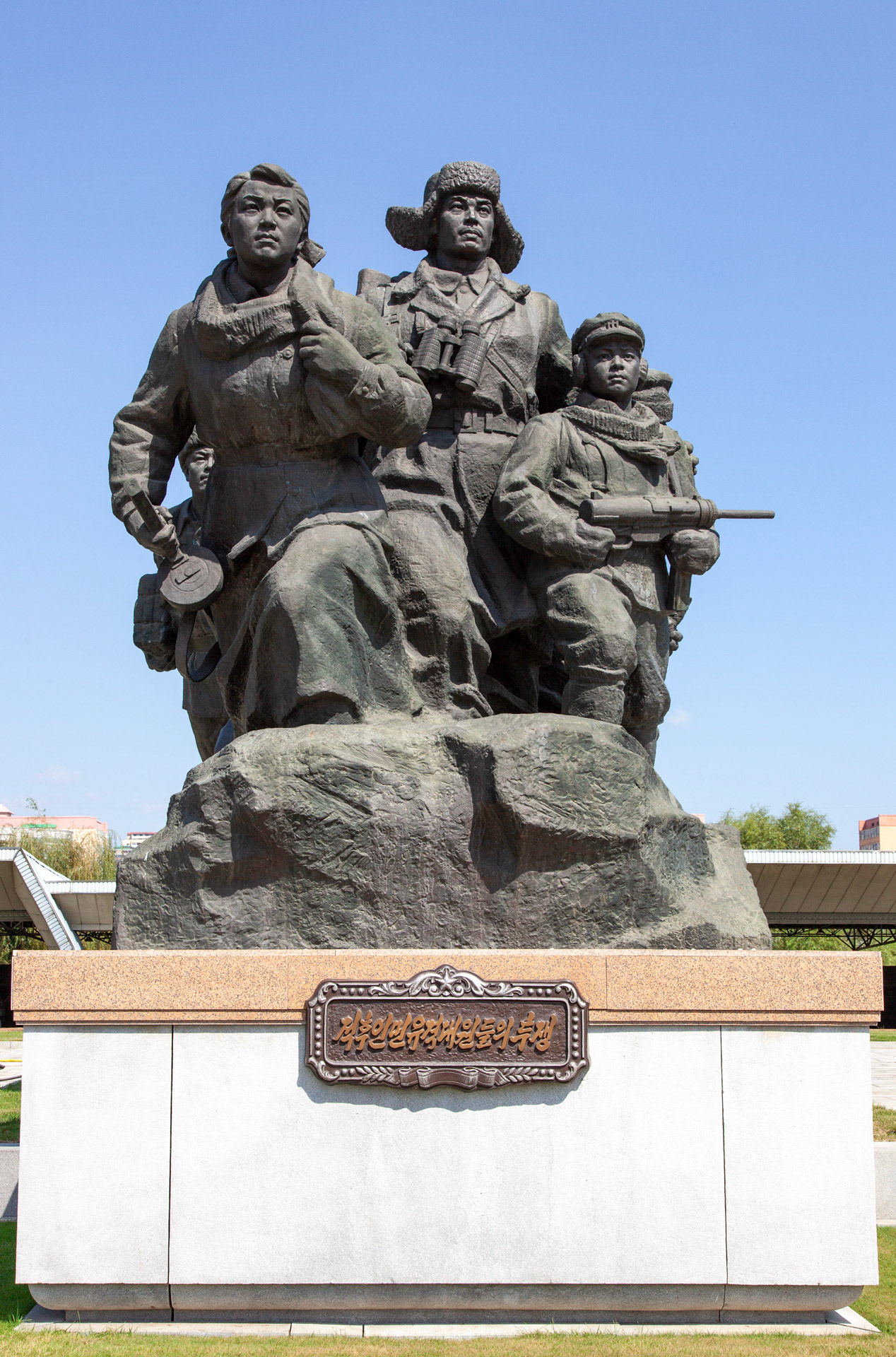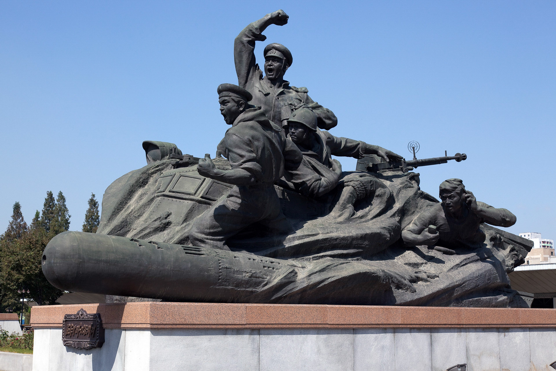 Photographic Series: North Korea, 2017 The Monument to the Victorious Fatherland Liberation War in Pyongyang rises prominently outside the eponymous museum, a sculptural homage to the Korean People’s Army. At its heart, the Victory Statue captures a soldier triumphantly raising the North Korean flag, emblematic of the state’s enduring narrative of heroism. Completed in 1993 to mark the 40th anniversary of the Korean War’s end, the ensemble of statues evokes pivotal battles and commemorates the army’s diverse branches with austere monumentality. Nearby, on the banks of the Taedong River, the captured U.S. Navy spy ship USS Pueblo silently reinforces the site’s symbolic weight, a tangible relic of conflict and national pride.